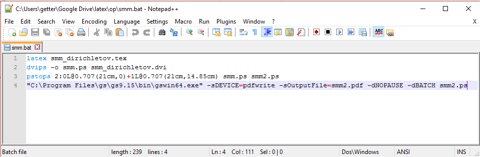 Eelmise ülesande käsufail (nt smm.bat) võib välja näha umbes selline: latex smm_dirichletov.tex dvips -o smm.ps smm_dirichletov.dvi psnup -2 smm.ps smm2.ps